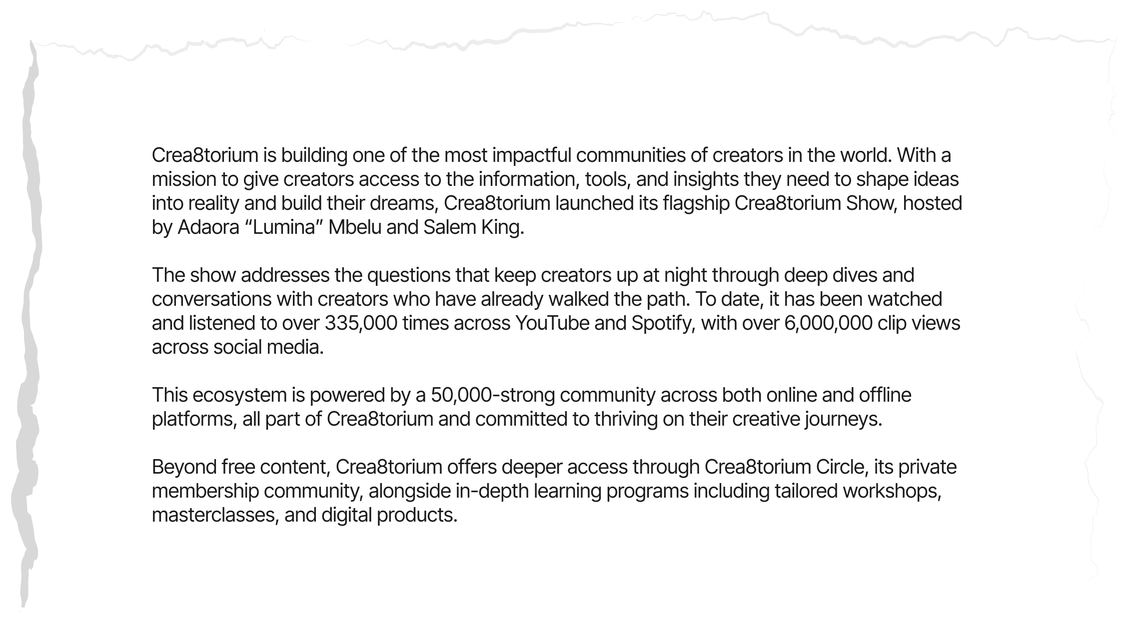 About Crea8toriumOur HostsLeadershipPressReach Us